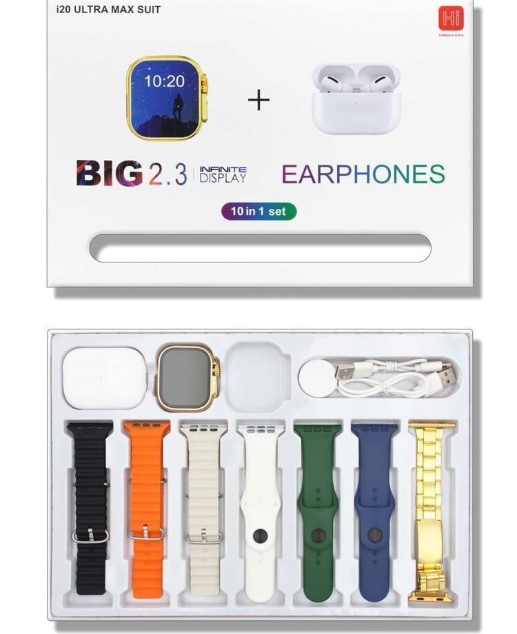 ULTRA SMART WATCH WITH 10 VARIABLE STRAPS AND CHAIN AND OCEANS STRAP WITH ULTRA WATCH AND WIRELESS CHARGER