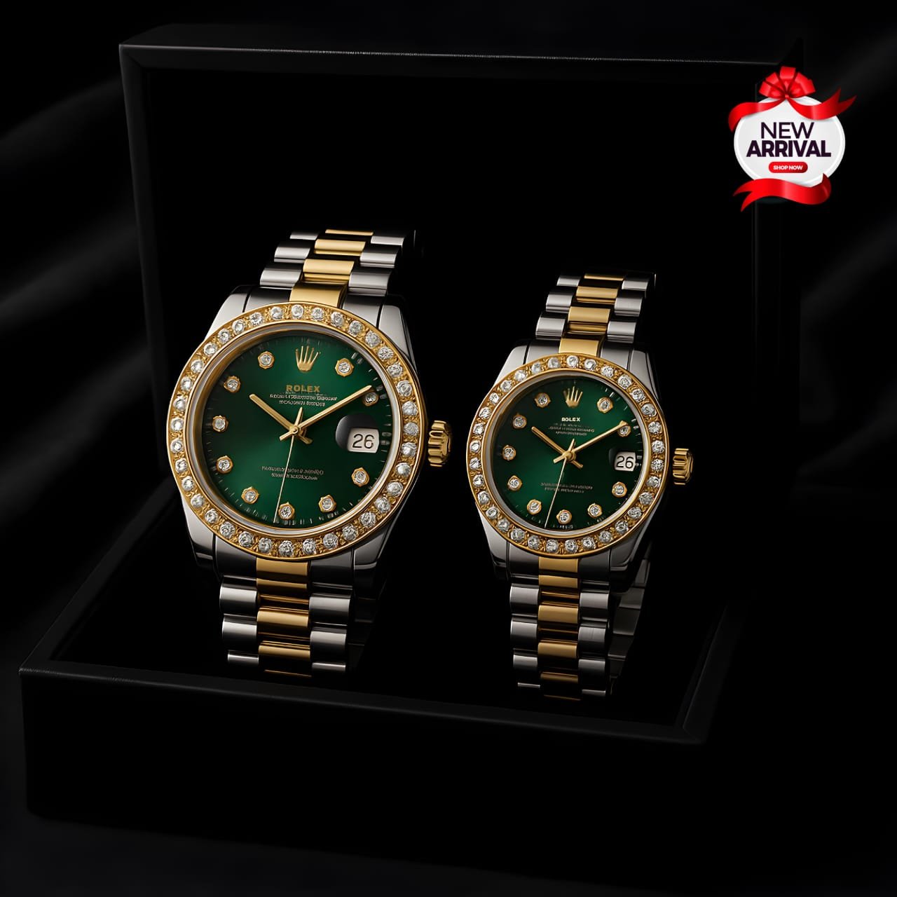 Be the first to review “Rolex Couple watch with golden silver dial and green dial”